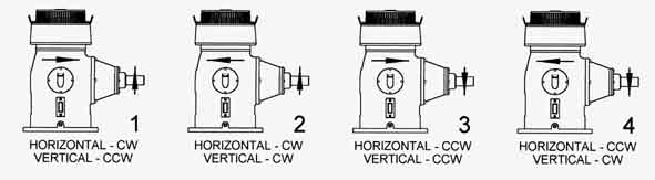 Shown above are four possible rotations. Number 1 is considered standard. Numbers 2, 3 and 4 are special rotations and are manufactured when specifically requested.